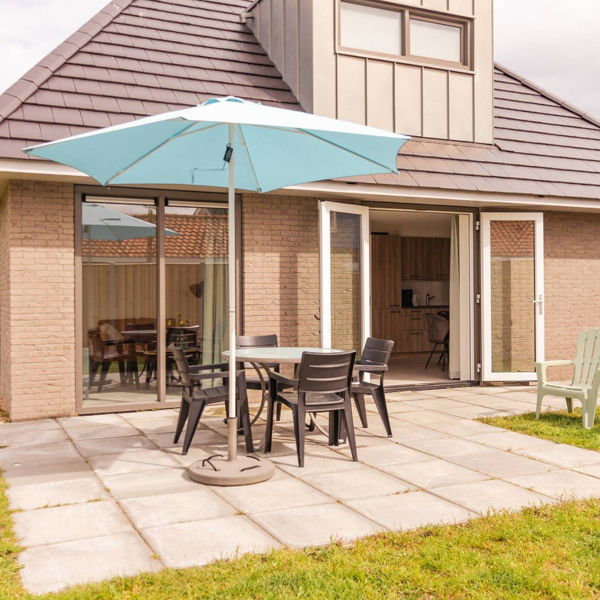- Parasols: Alleen gebruiken bij windstil weer. Bij wind, regen en altijd als u weggaat de parasol inklappen/ opruimen en het touwtje erom doen. Het weer kan hier snel omslaan.