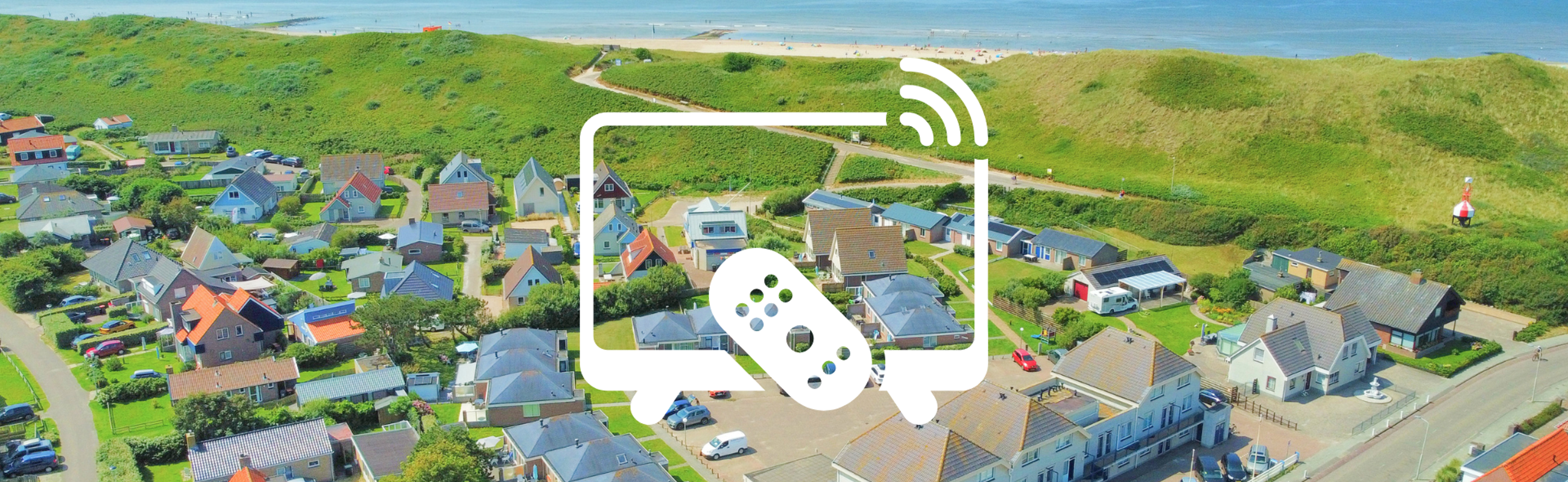 In dit vakantiehuis staat een gewone televisie met een KPN-kastje (tv-ontvanger).