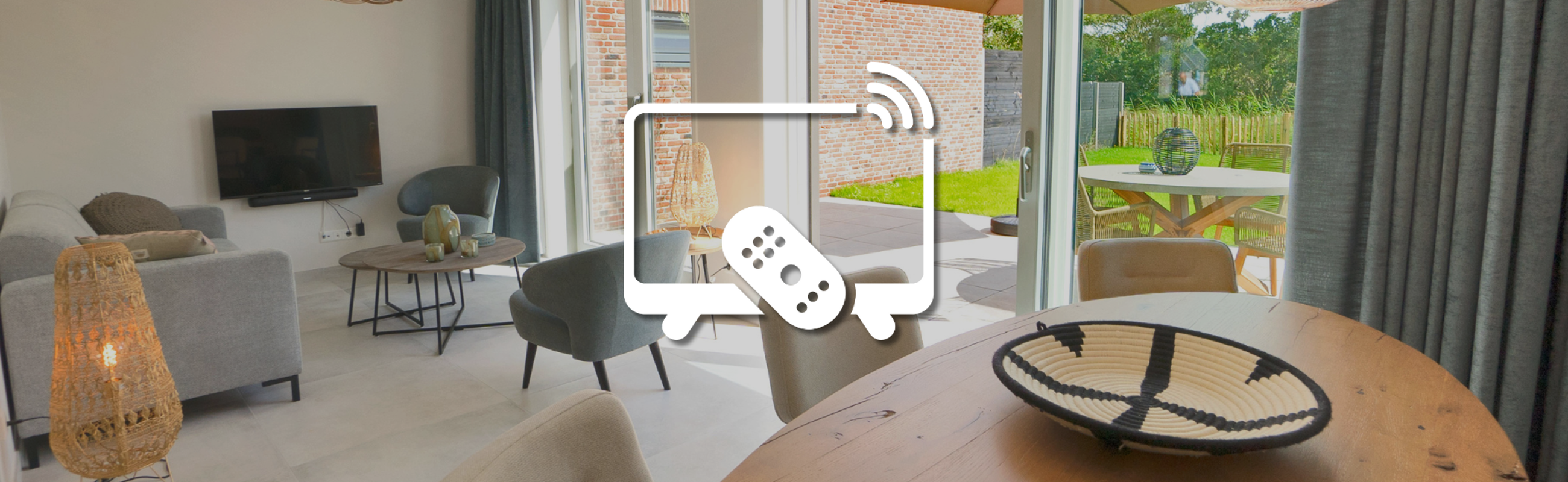 In dit vakantiehuis staat een televisie met een Ziggo-kastje (Next Mini). Via dit kleine zwarte kastje komen de tv-zenders.