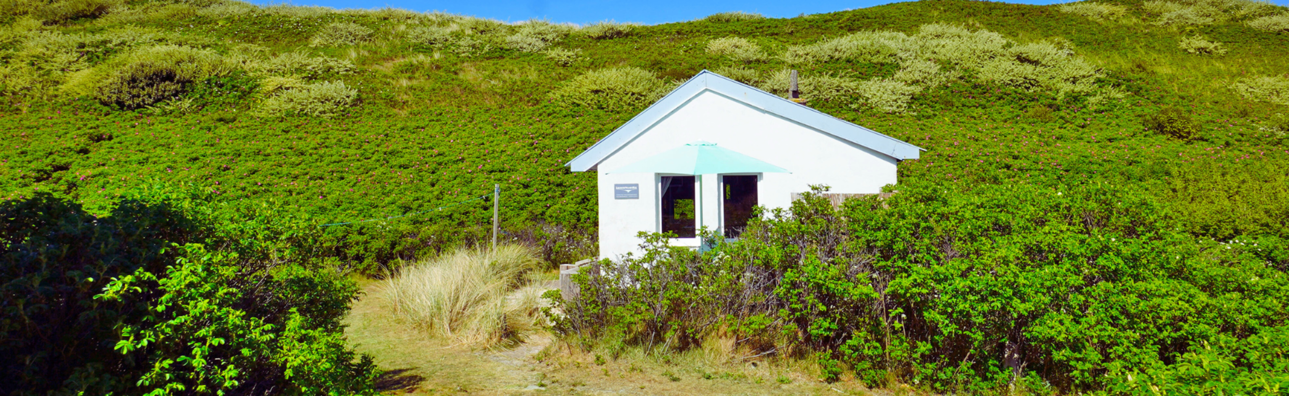 ’s Ochtends wakker worden met het geluid van de wind door de duinen.