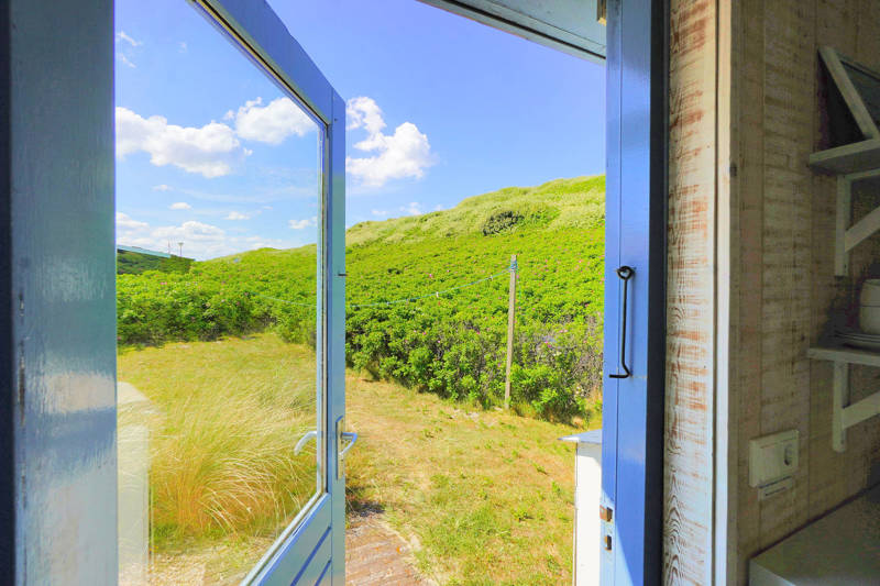 Het huisje ligt verscholen tegen de duinen, net buiten de drukte maar op loopafstand van het strand en het dorpsplein. Geen groot vakantiepark, maar een persoonlijk vakantiehuisje met een eigen sfeer.