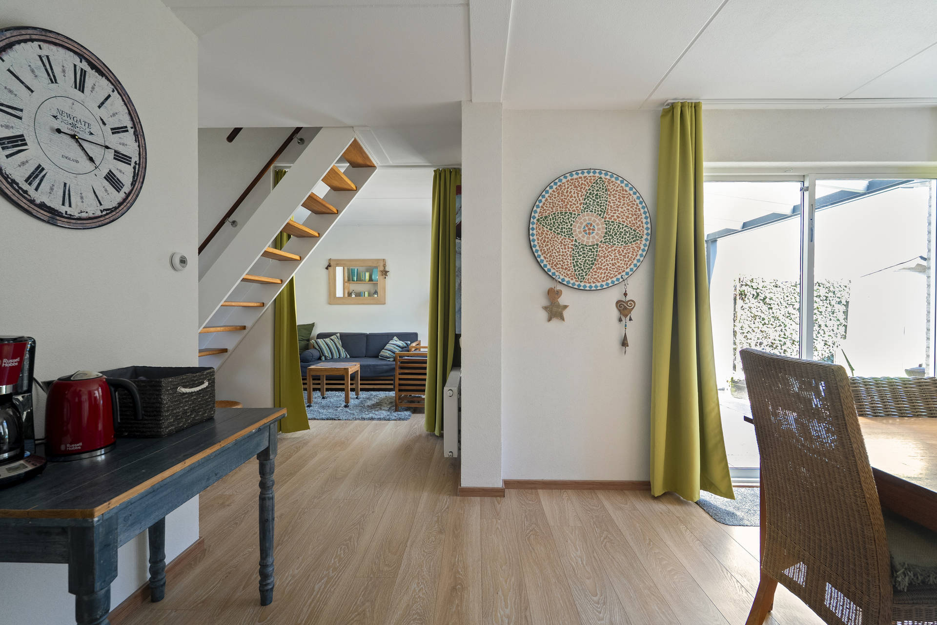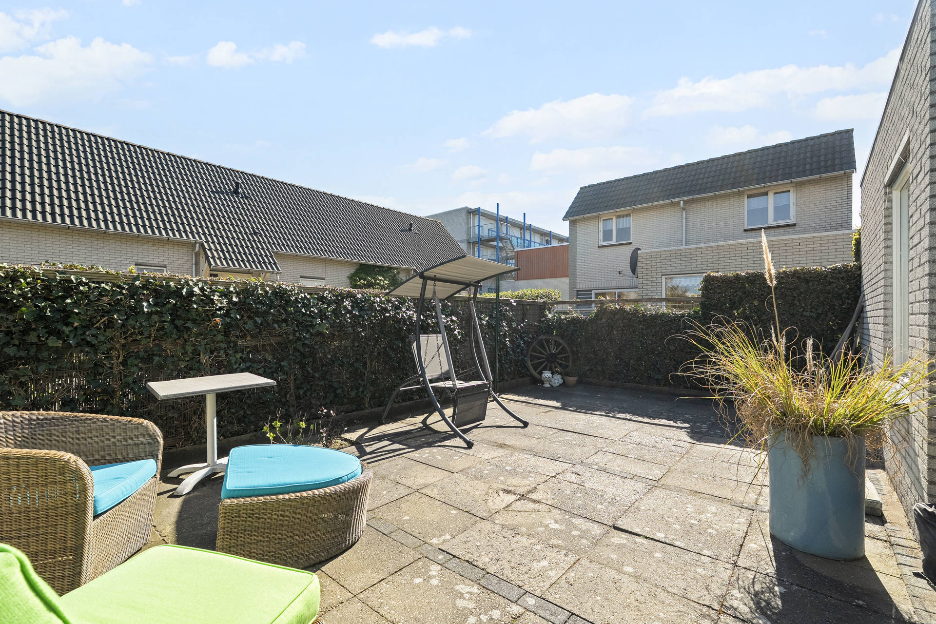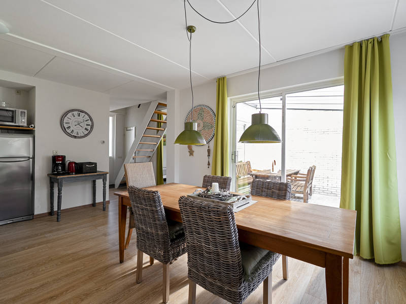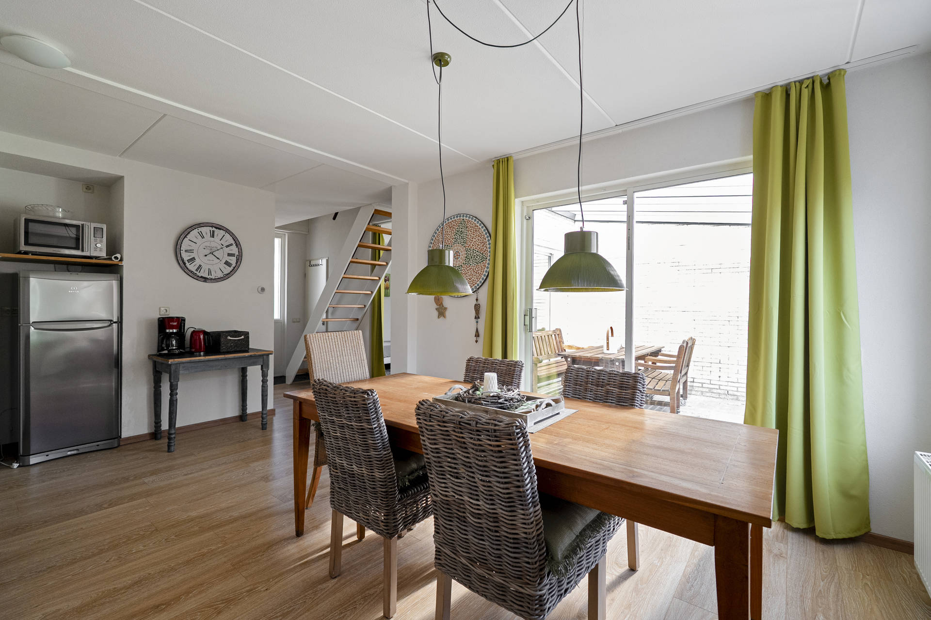 Via de openslaande deuren naast de eethoek loop je zo het terras op. Op het besloten terras met tuinmeubilair geniet je heerlijk van de buitenlucht, een kop koffie in de ochtend of een glas wijn na een dag op het strand.