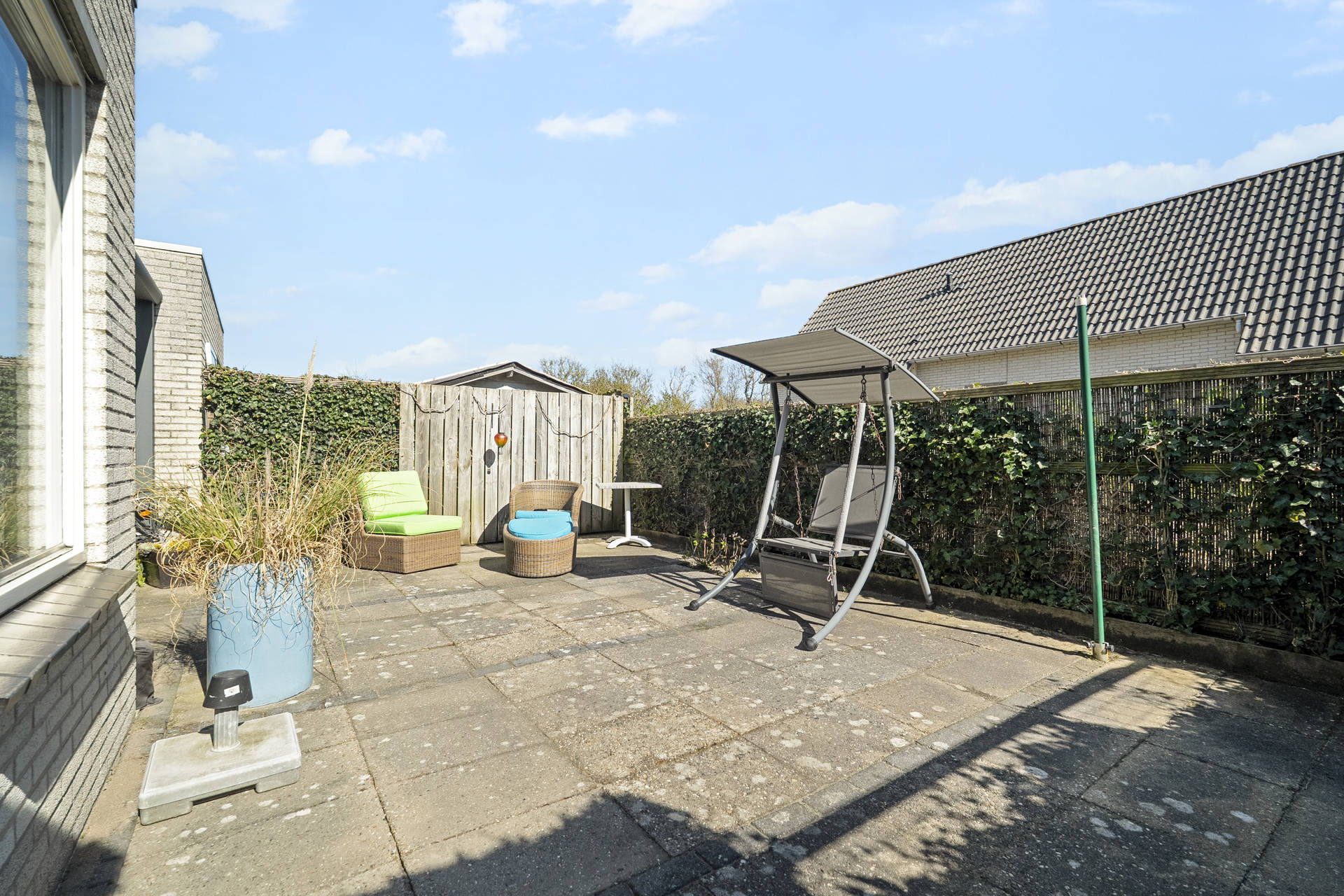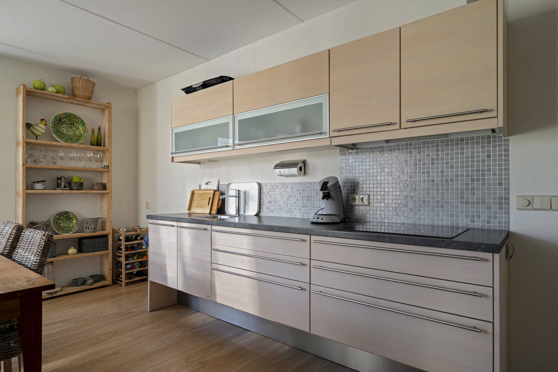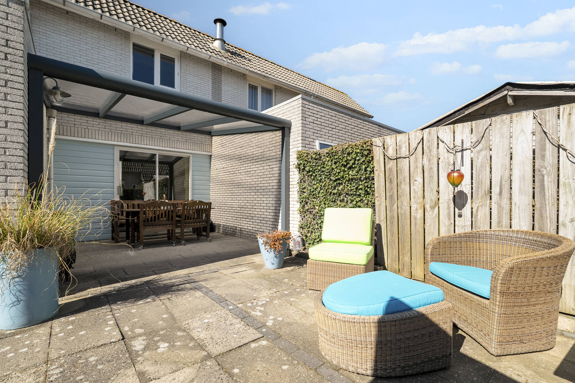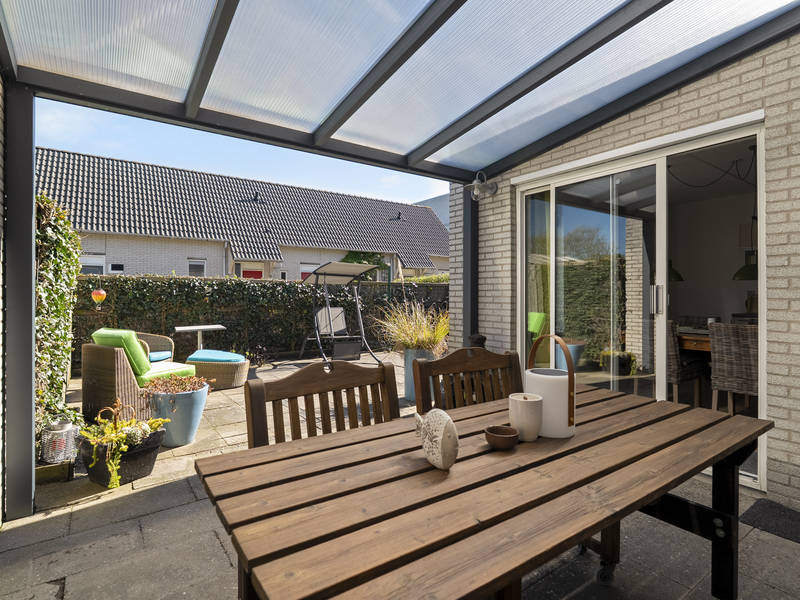 Via de openslaande deuren naast de eethoek loop je zo het terras op. Op het besloten terras met tuinmeubilair geniet je heerlijk van de buitenlucht, een kop koffie in de ochtend of een glas wijn na een dag op het strand.