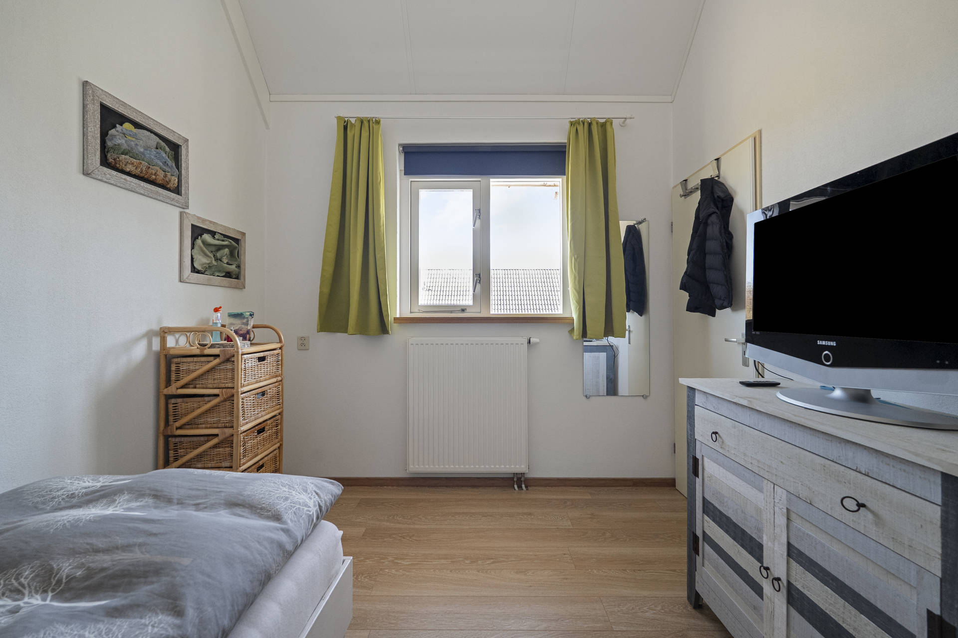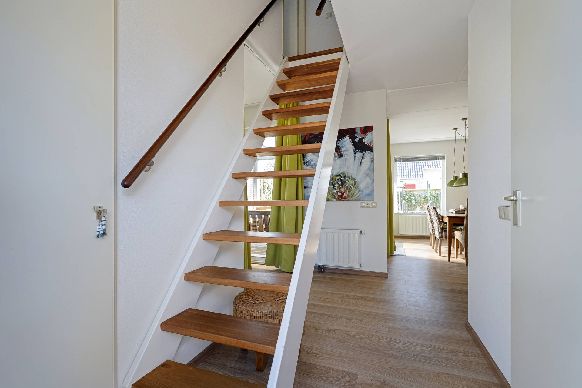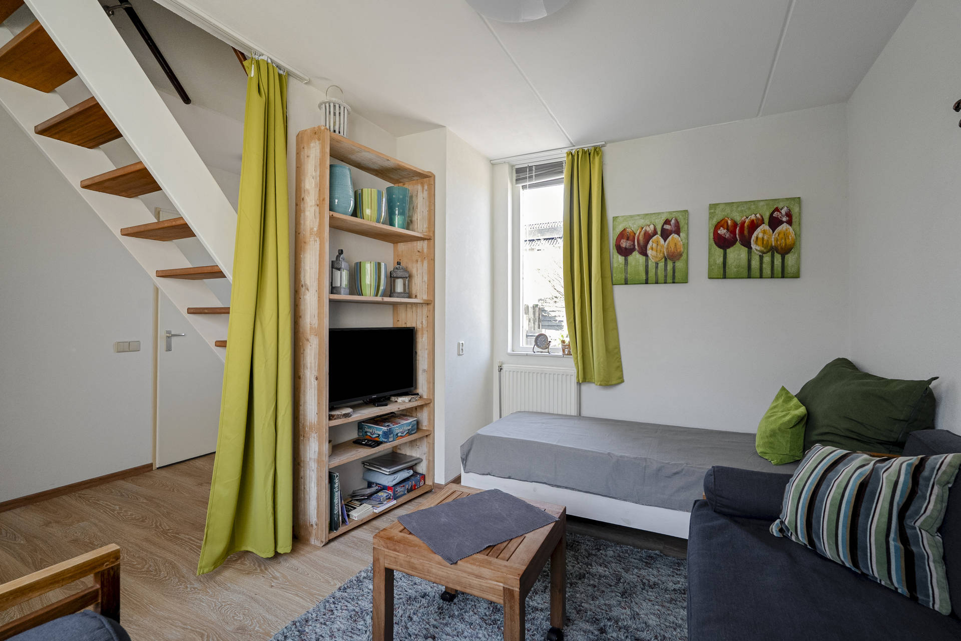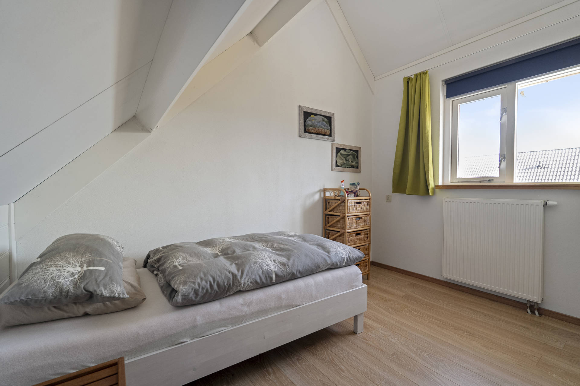 Op de begane grond bevindt zich de badkamer, uitgerust met een inloopdouche, wastafel en toilet. Via de open trap in de woonkamer kom je op de eerste verdieping, waar zich twee slaapkamers bevinden. Beide kamers zijn ingericht met twee eenpersoonsbedden.
