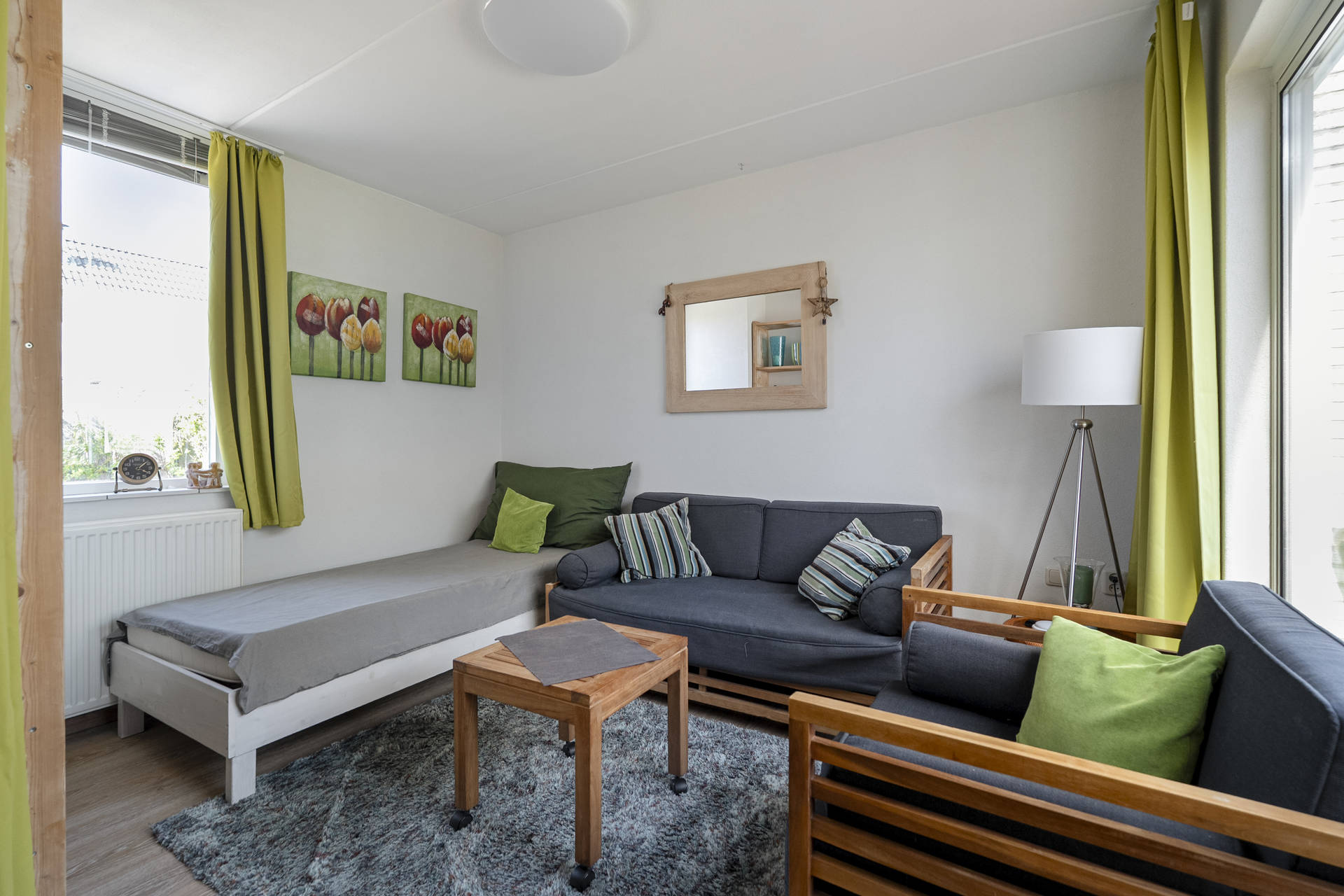 In de woonkamer vind je daarnaast een gezellige zithoek met comfortabele bank, fauteuils en kabel-tv, ideaal om 's avonds tot rust te komen.