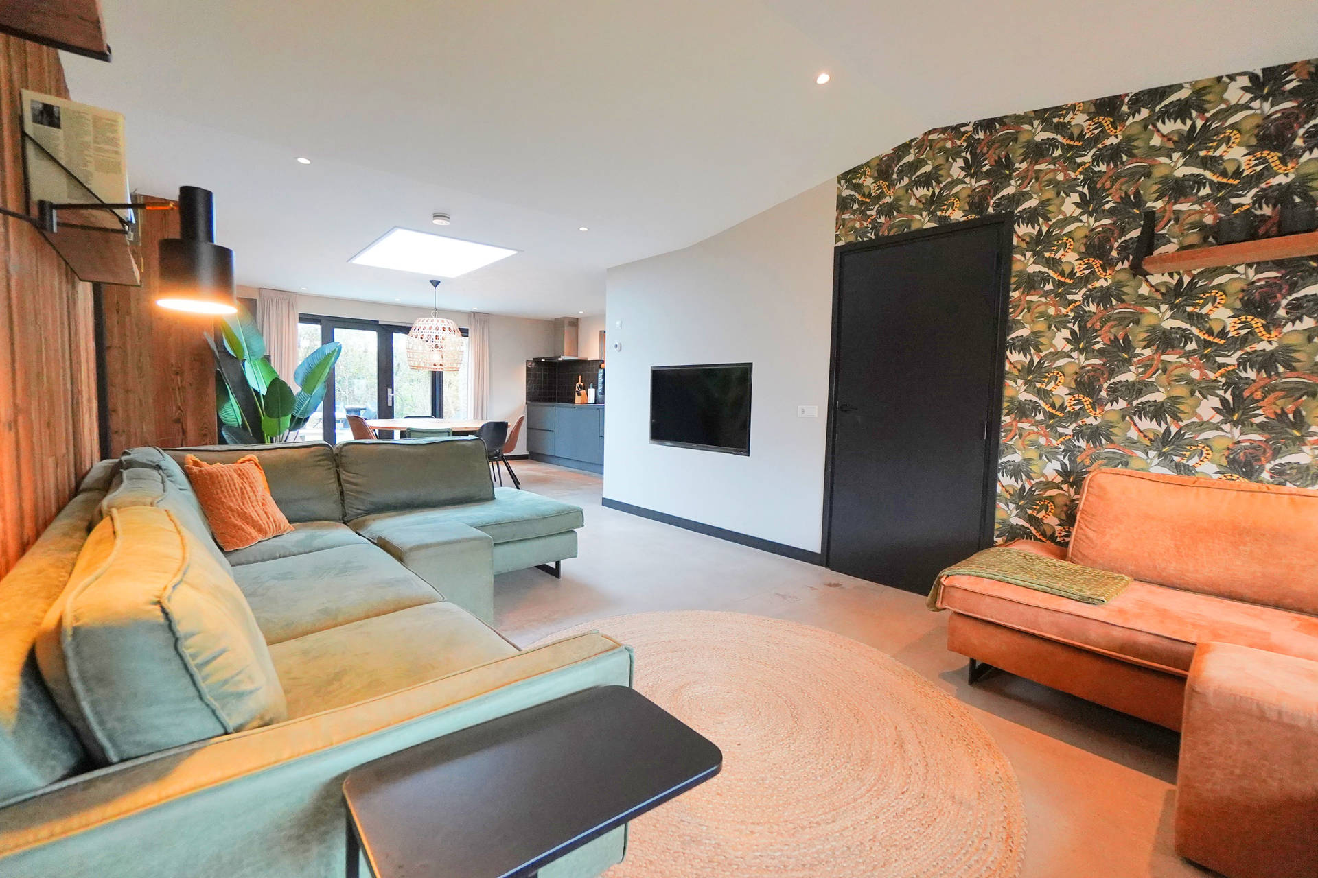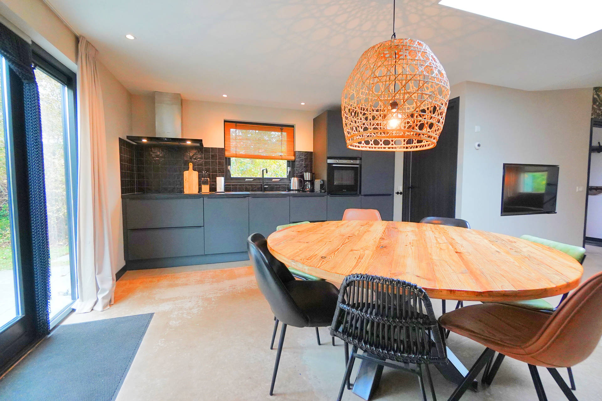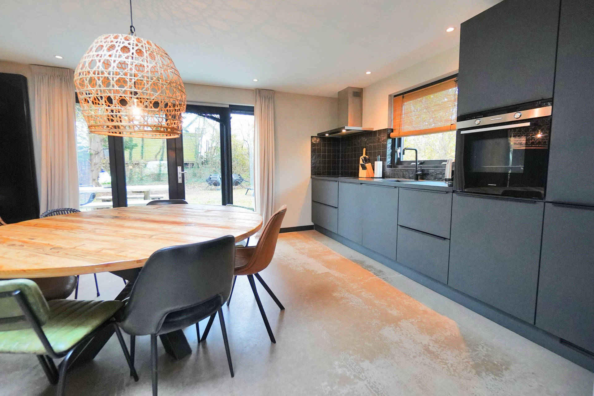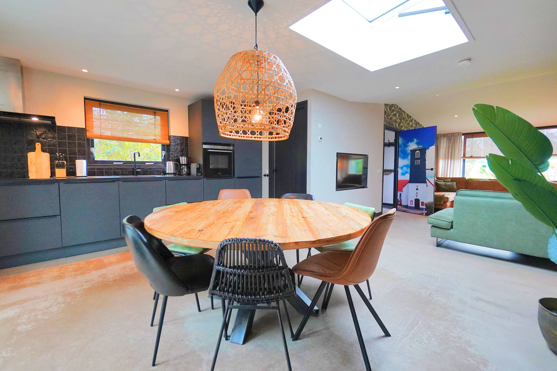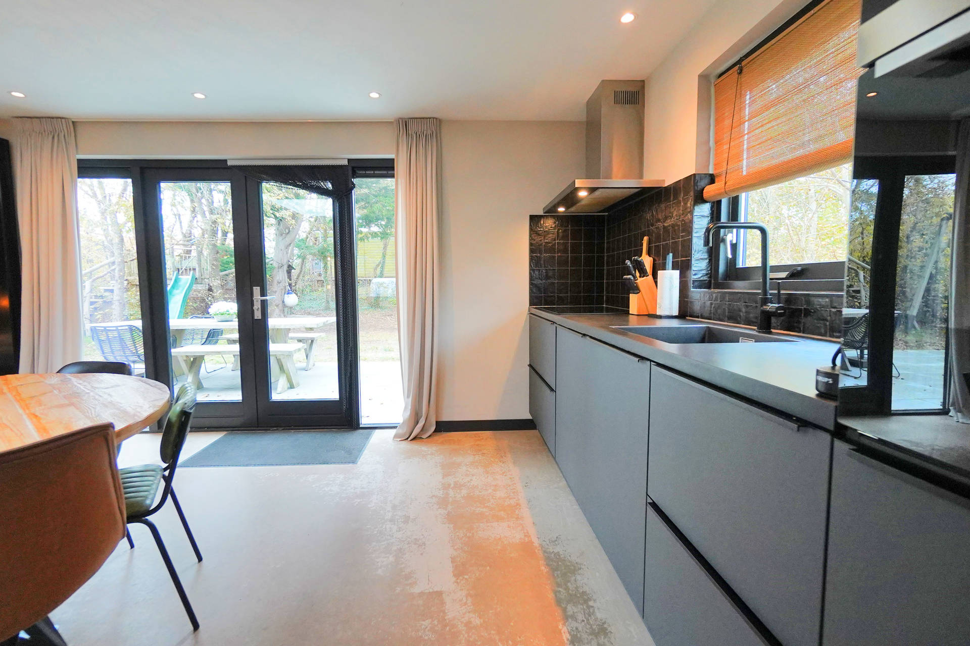 Het huis is geheel gelijkvloers en ingericht met oog voor comfort en detail. In de woonkamer vindt u een grote eettafel, een comfortabele zithoek en veel licht door de openslaande deuren naar de tuin. De moderne keuken is volledig uitgerust met een oven, vaatwasser, koelkast, vriesvak, magnetron, Nespresso- én filterkoffieapparaat – alles om ontspannen te koken en te genieten met familie of vrienden.