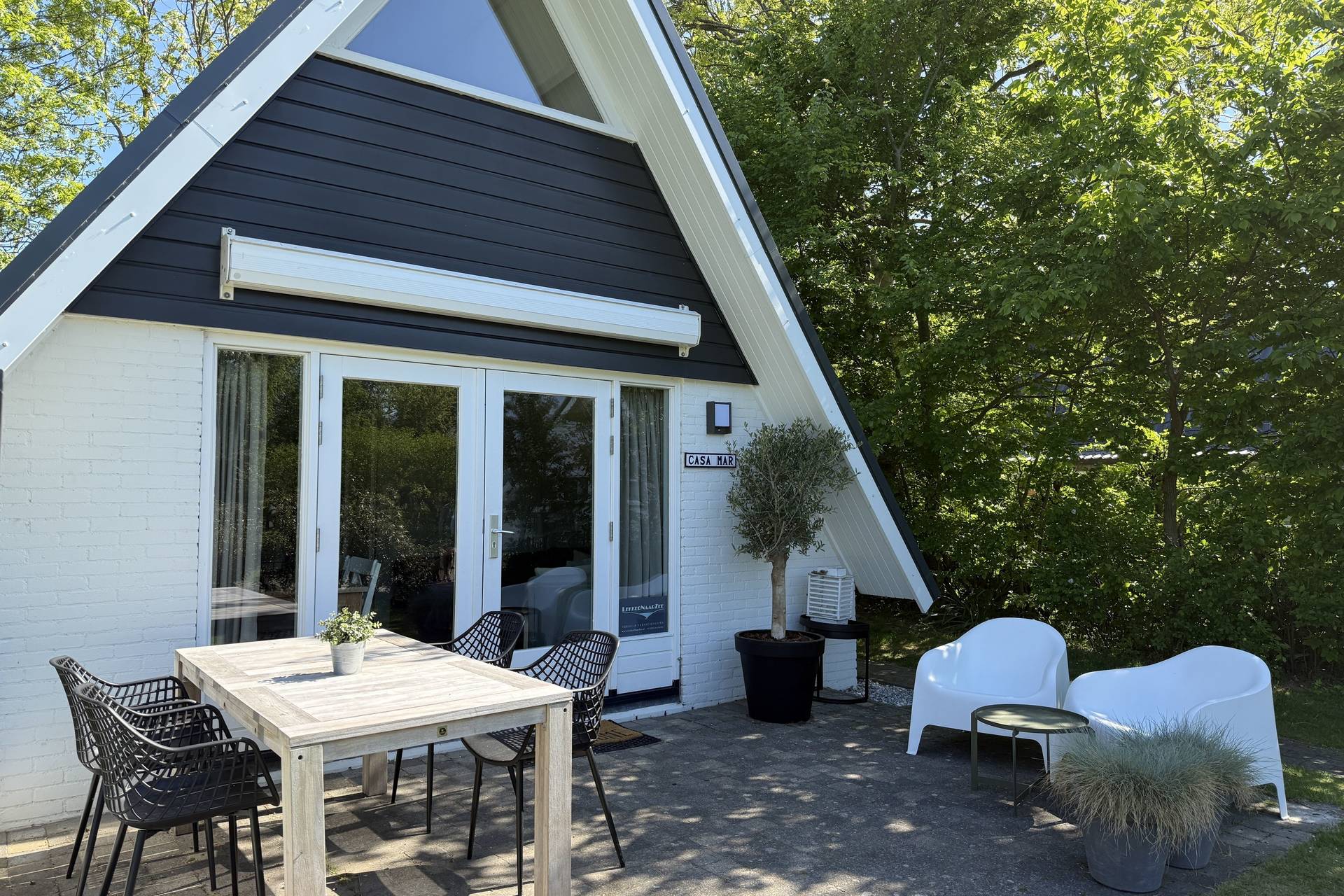Het huis beschikt over een lekkere grote tuin aan de zuidwestzijde van het huis. Hier is ook een gezellig zitje om 's avonds nog even na te genieten van de dag.