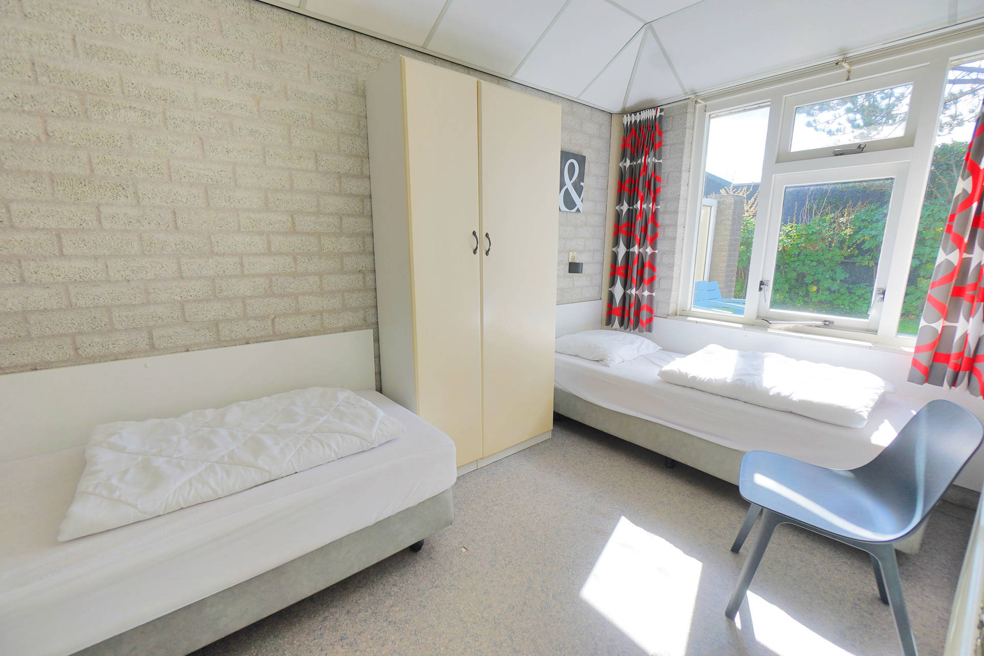 Alle vertrekken bevinden zich op de begane grond (woonkamer met open keuken, 1 slaapkamer met twee eenpersoonsbedden (2 boxsprings), 1 slaapkamer met 2 eenpersoonsbedden, nette badkamer en toilet.