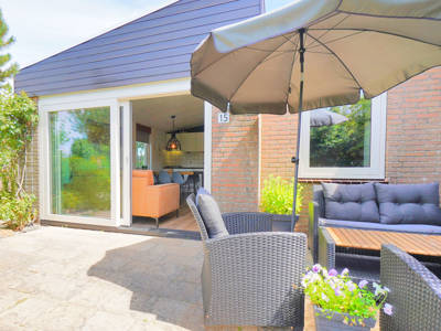 Modern vakantiehuis met sauna, in Callantsoog voor 6 personen met omheinde tuin, 3 slaapkamers en moderne keuken. Op loopafstand van strand en dorpscentrum.